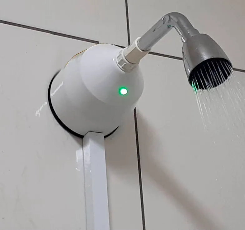 O funcionamento desse temporizador é baseado num dispositivo instalado antes do chuveiro, que corta a água.